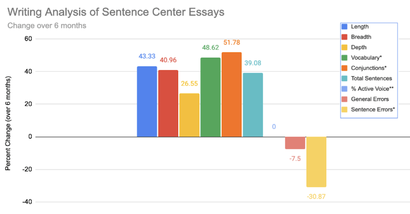 - 39.08% increase in sentences per essay